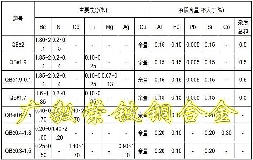 常用的加工鈹青銅有:Cu-2Be-0.3Ni, Cu-1.9Be-0.3Ni-0.2Ti等。